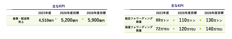 これらの取り組みによって、航空および海運輸送や、倉庫・配送等の取り扱いを拡大させ、売上収益および事業利益を成長させていきます。