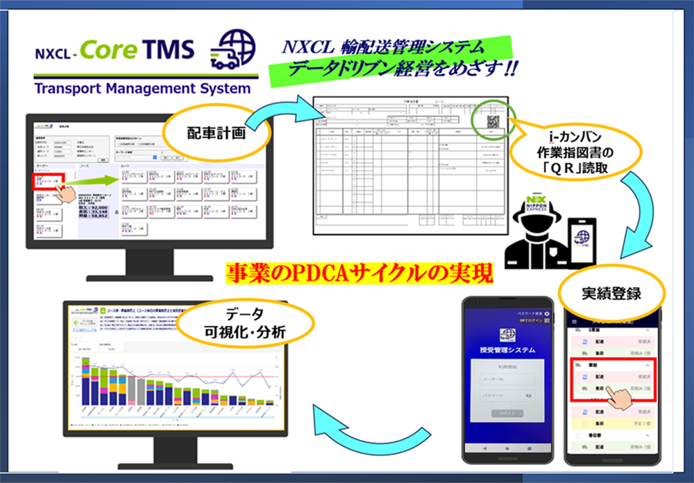 その取り組みの一つとして、現在開発中のNXCL基幹システム「CoreSystem」の先行機能であるCoreTMS(輸配送管理システム)(*1)を全国20拠点に導入しました。CoreTMSの導入により、輸配送の業務のDX化が推進され、業務負荷の軽減や輸配送業務の効率化など、環境への負担軽減にも繋がっています。