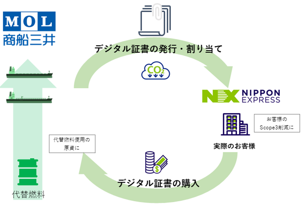 また、2025年2月からは、株式会社商船三井(以下MOL)が開始した海上輸送カーボンインセットプログラムへ参画し、お客様のScope3排出量削減に貢献するサービス「NX-GREEN Ocean Program」を開始しました。本サービスは、MOLが運航する船隊で実施した低炭素輸送サービスで創出されたGHG排出削減量と証明書をNXグループが調達し、Scope3削減に取組中のお客様へ割り当てることで、証明書の割り当てを受けたお客様は、自社の統合報告書へ反映させる事が可能になります。対象は同社のB/Lを発行する世界各地発着の全ての国際海上輸送となります。同社は今後も海上貨物の利用運送事業を通じて気候変動対策にも取り組みながら、人々のより良い暮らしと持続可能な社会の発展に貢献していきます。