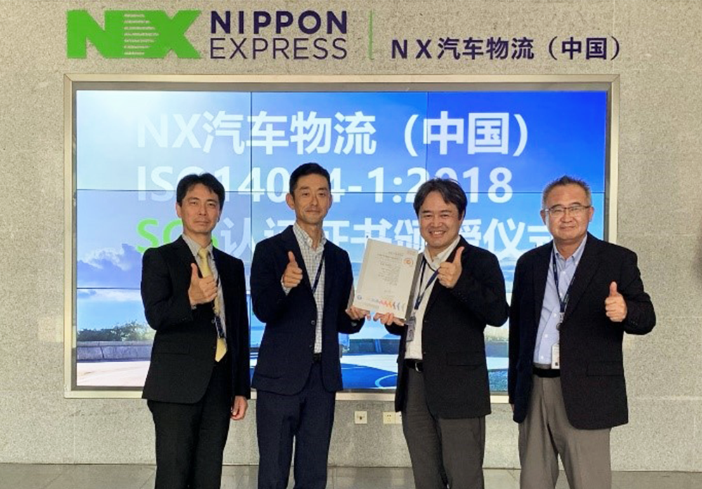 NX汽車物流(中国)有限公司では、これまでISO 9001:2015(品質マネジメントシステム)、ISO 14001:2015(環境マネジメントシステム)を取得していますが、2024年7月、ISO 14064-1:2018(温室効果ガス排出量算定システム)(*1)および ISO 45001:2018(労働安全衛生マネジメントシステム)(*2)の認証を取得しました。国際的な規格に基づいた温室効果ガス排出量の算出による信頼性の高い低炭素物流サービスの提供と、より従業員の安全に配慮した健康的な職場環境作りを目指します。
